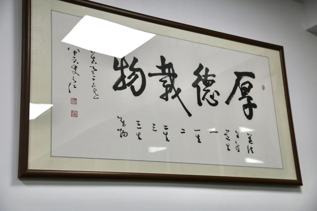 這不是第一次見孟德鳳,在蘇商會(huì)的大小活動(dòng)上,經(jīng)常能看到孟德鳳認(rèn)真向商界前輩請(qǐng)教學(xué)習(xí)的身影,但走進(jìn)他位于蘇州工業(yè)園區(qū)的辦公室,坐下來(lái)交流,卻還是第一次。他辦公座位抬頭可見的墻上,由歐軟云員工家屬揮毫潑墨的“厚德載物”四個(gè)大字醒目地映入眼簾。