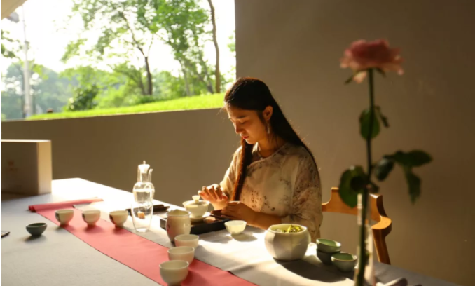 箏樂飄飄處處聞,石爐敲火試新茶。古箏彈奏耳朵,烹茶熏染鼻子,賞心樂事不在別家院,就在蘇商家宴。