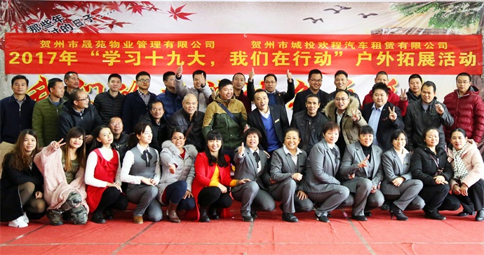 發(fā)布時(shí)間:2017-11-25 作者:文/錢麗瑩 圖/徐禮琴 來(lái)源:本站原創(chuàng) 審核:羅海蘭2017年11月25日,賀州市晟苑物業(yè)管理有限公司、賀州市城投歡程汽車租賃有限公司聯(lián)合舉行“學(xué)習(xí)十九大,我們?cè)谛袆?dòng)”戶外拓展活動(dòng),深入領(lǐng)會(huì)黨的十九大精神實(shí)質(zhì)。