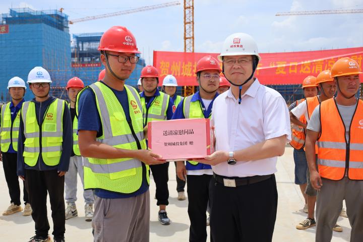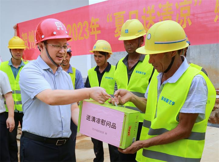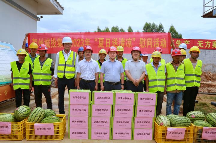 為持續(xù)做好夏季防暑降溫工作,關(guān)心關(guān)愛在高溫天氣中堅守崗位、辛勤勞動的施工人員,近日,城投集團黨委書記、董事長黃俊,集團黨委副書記、總經(jīng)理常瑜分別到賀州第三高級中學項目、賀州市平桂區(qū)域污水處理設(shè)施建設(shè)項目開展2023年“夏日送清涼”慰問活動。