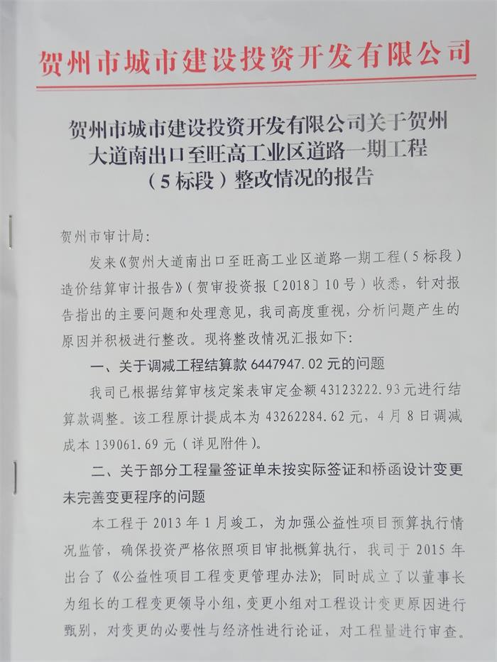 附件一:關(guān)于賀州市城東新區(qū)公租房4 樓工程竣工結(jié)算整改情況的報告 pdf